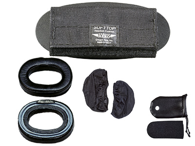 Kit includes SoftTop® Headset Cushion, SoftSeal® Ear Cushions, SoftSkin® Ear Seal Covers, and MicMuff® Microphone Cover. The SoftTop with this kit can be ordered with or without optional attached D-Ring for hanging your headset while not in use.